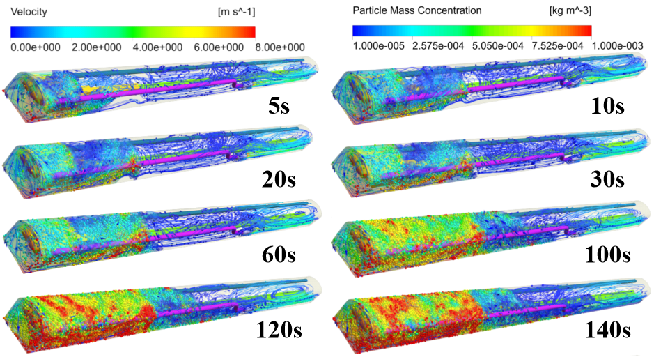 ④构建沉积粉尘颗粒卷扬动态模型。揭示了考虑湍流强度的粉尘粒子与高速气流、粒子之间的碰撞、摩擦和剪切作用下粒子团聚/结块程度对粉尘爆炸火焰传播特性的影响机制。